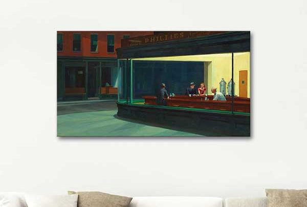 Edward Hopper‘ın ‘Gece Kuşları‘ (Nighthawks) adlı eserinin kanvasa baskı tablosu. Eserin orjinali Art Institute of Chicago‘da bulunmaktadır.