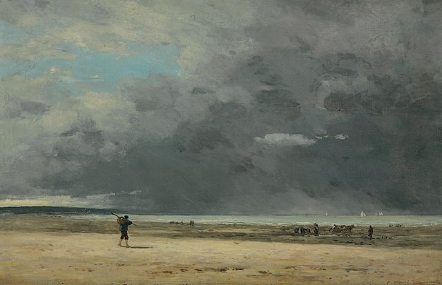 Eugene Boudin’in ‘Deauville, Çekilen Deniz’ (Deauville, marée basse) adlı eserinin kanvas tablosu. Eserin orjinali özel bir koleksiyonda bulunmaktadır.