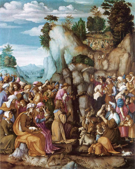 Francesco Bacchiacca’nın ‘Hz Musa Kayaların Arasından Su Çıkarırken’ (Moses Striking the Rock) adlı eserinin kanvas baskı tablosu. Eserin orijinali Scottish National Gallery Edinburgh‘da bulunmaktadır.