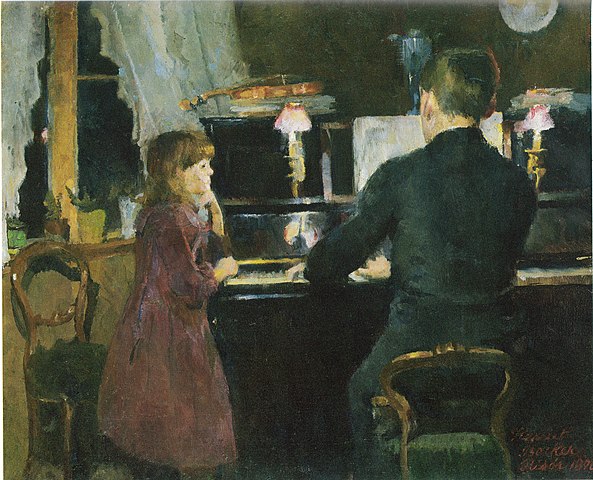Harriet Backer’in ‘Abi Çalarken’ (Big Brother Playing) adlı eserinin kanvas tablosu. Eserin orijinali İsveç, Gothenburg Museum of Art’da sergilenmektedir.