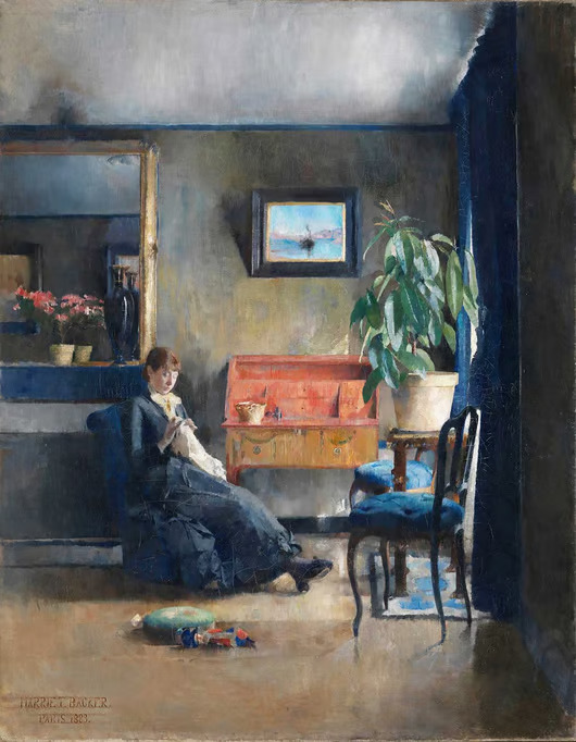 Harriet Backer Mavili İç Mekan Kanvas Tablo