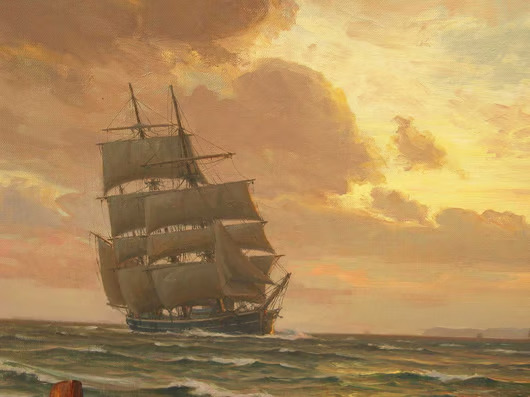 Vilhem Karl Ferdinand’ın ‘Arnesen Kıyıda Üç Direkli Gemi’ adlı eserinin kanvas baskı tablosu. Eserin orjinali özel bir koleksiyonda bulunmaktadır.